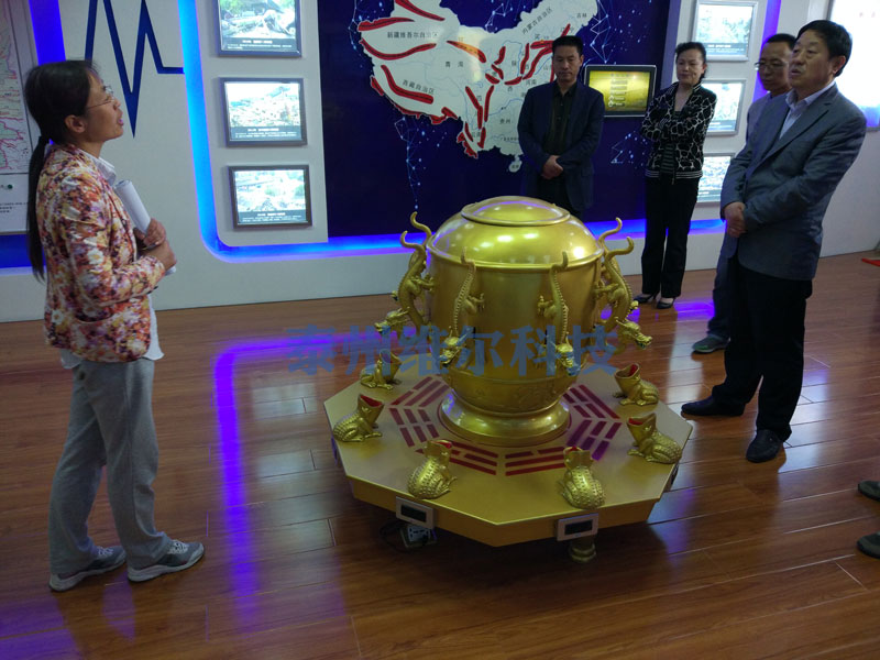 寶雞市防震減災(zāi)科普教育基地?fù)碛?前言燈箱、中國活動構(gòu)造圖(地震-群災(zāi)之首)、寶雞市地震背景、地球內(nèi)部構(gòu)造模型、單人地震體驗臺、制造地震模擬體驗臺、地震虛擬仿真場景逃生訓(xùn)練系統(tǒng)、縱橫波模擬演示器、地震災(zāi)害虛擬翻書、地震知識搶答系統(tǒng)、張衡地動儀、干粉滅火器等