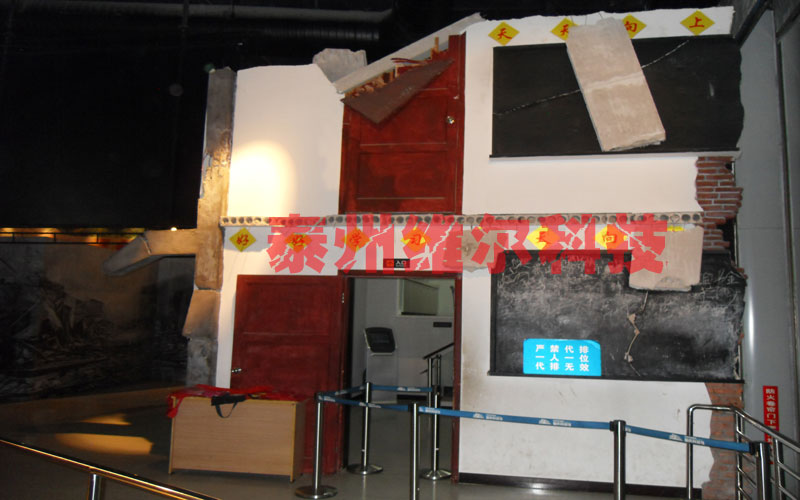 產(chǎn)品名稱:地震廢墟場景 產(chǎn)品介紹:地震廢墟造型及震后破裂場景營造震后殘破效果,由一座3維空間的地震廢墟場景造型,通過對展廳傾斜墻的利用,由墻面、地面及頂面構(gòu)造出一個(gè)震后殘破的建筑,給人以震撼的視覺效果;