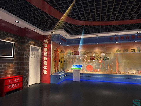這是個(gè)讓演練者體驗(yàn)如何從火災(zāi)中正確逃生的系統(tǒng)。這個(gè)系統(tǒng)可以告訴演練者在火災(zāi)時(shí)應(yīng)該如何選擇正確的路線,按照正確的方法進(jìn)行逃生,尤其要告訴演練者的是,在有煙霧的環(huán)境中逃生時(shí),一定要用濕毛巾或其它紡織物捂住口鼻并盡量蹲著走,否則會(huì)大量吸入煙造成窒息。 體驗(yàn)者進(jìn)入展區(qū)后,由控制系統(tǒng)會(huì)自動(dòng)控制燈光熄滅,周圍墻壁上出現(xiàn)火苗,音響播放火的音效,將體驗(yàn)者置入模擬火災(zāi)現(xiàn)場(chǎng),2秒鐘后,進(jìn)入模擬疏散出口上方的安全出口標(biāo)志燈亮,體驗(yàn)者開始進(jìn)入模擬火災(zāi)煙霧逃生。疏散通道區(qū)設(shè)有自動(dòng)發(fā)排煙裝置,在逃生通道設(shè)置足夠數(shù)量的疏散指示標(biāo)志,并且設(shè)置一扇假電梯門,體驗(yàn)過(guò)程中,體驗(yàn)者在煙霧區(qū)沒(méi)有按要求彎腰前進(jìn),超過(guò)規(guī)定高度,或者觸動(dòng)電梯按鈕,最后有電腦評(píng)判逃生成功與否。